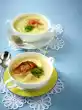 Wash, clean and halve the strawberries. Wash and clean the rhubarb and cut it diagonally into 1 cm wide pieces