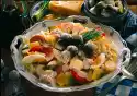 Season with salt, orange pepper and sugar. Pour over the salad. Serve garnished with lemon balm.