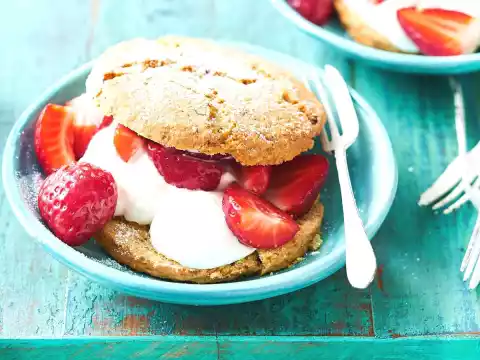 Cut scones in half horizontally. Spread cream and strawberries on the lower halves. Place the upper halves on top. Dust with icing sugar.
