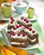 Sprinkle with pistachios and chill for about 30 minutes before serving. Serve decorated with mint as desired. Makes 12 pieces.