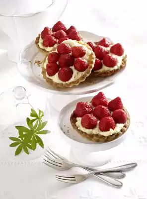 Place the tartelettes on the oven rack. Bake in the preheated oven (electric cooker: 200 °C/ convection oven: 175 °C/ gas: level 3) for 12-15 minutes. Take out, let cool down briefly. Remove from the tins and allow to cool