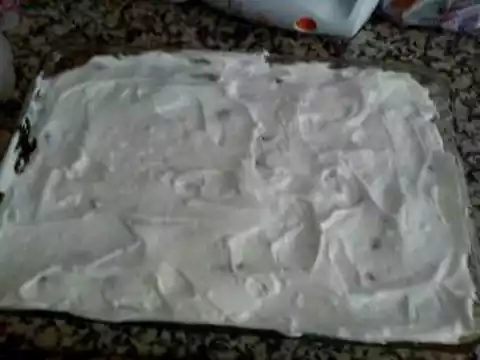 Whip cream with cream stiffener, vanilla sugar and sugar until stiff and stir in yoghurt and crème double or crème fraìche, spread the mixture on the strawberries and chill for about 3 hours.
