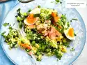 Preheat oven (electric cooker: 200 °C/circulating air: 180 °C/gas: see manufacturer). Line a tray with baking paper. Moisten a tea towel with cold water and spread it out on the work surface. Place a dry cloth on top. Place 1 sheet of dough on the tea towel. Brush thinly with butter. Place a 2nd overlapping sheet on top so that a rectangle of approx. 30 x 40 cm is formed. Brush thinly with butter. Place one salad, salmon and potato mixture on the edge of each long side and roll up. Turn the roll up to a snail.