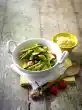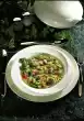 Clean and wash the aubergines and peel them lengthwise, finger-wide. Leave to stand in salted water for 30 minutes. Peel and halve the onions and cut into half rings. Peel garlic and chop roughly.