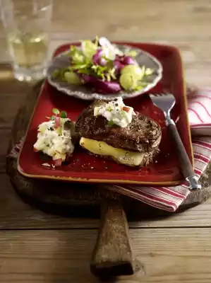 Mix with apple cubes, marjoram and horseradish. Season to taste with salt. Keep cold. Wash beef fillet, dab dry and cut horizontally to 3/4. Heat 2 tablespoons of oil in a frying pan. Season beef fillet with salt and pepper.
