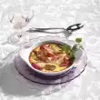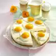 Cook the ham in boiling water for 35-40 minutes. In the meantime, boil eggs hard for 10 minutes. Quench cold, peel and cut in half lengthwise. Remove the egg yolks and pass through a sieve. Mix with cream cheese. Stir tomato paste into one half of tomato paste, mustard into the other half. Fill the mixture separately into a piping bag with star-shaped spout and squirt into 8 egg halves each.