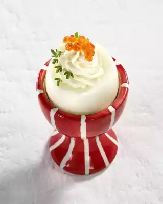Season with salt and pepper. Pour into a piping bag with star-shaped spout and squirt into the eggs. Add 1/2 teaspoon of trout caviar to each. Cut cress from the bed and sprinkle the eggs with it