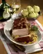Take the goose out, keep it warm. Sieve the frying stock, degrease well and bring to the boil. Stir flour and 4 tablespoons of water until smooth. Bind the stock with it. Simmer for about 5 minutes. Arrange the goose with the filling. Serve red cabbage extra. Serve with potato dumplings