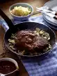 Take the baking tray out of the oven. Turn down the oven temperature immediately (electric oven: 100 °C/circulating air and gas: not suitable). Remove the potatoes from the baking tray and place the steaks on top instead. Bake in the oven for about 10 minutes.