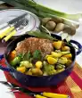 Cleaning and washing vegetables. Cut leek into pieces, tomatoes into slices. Add both to the roast after 30 minutes. Spread the rest of the filling on the roast about 20 minutes before the end of the cooking time. Goes well with boiled potatoes