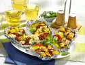 Bake in the preheated oven (electric oven: 200 °C/ gas: level 3) for approx. 30 minutes. In the meantime, wash, quarter and seed the tomatoes. Cut the fruit flesh into small cubes. Sprinkle kohlrabis with diced tomatoes and fresh chervil leaves before serving.