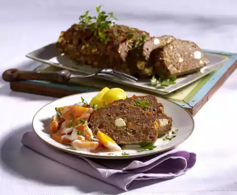 Knead in the carrot cubes, half of the parsley and cheese. Shape the minced dough into a narrow high roast. Place on a baking tray lined with baking paper. Cook in the preheated oven (electric cooker: 175 °C/ convection oven: 150 °C/ gas: level 2) for about 45 minutes.