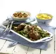 Cut the remaining peppers into thin rings. Arrange potatoes, meatballs and tomato sauce. Sprinkle with pepperoni rings.