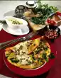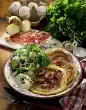Place in a flat ovenproof dish. Pour the sauce over it, sprinkle with the remaining cheese and bake in a preheated oven (electric: 200 °C/ gas: level 3) for approx. 15 minutes. Wash parsley, dab dry, chop and sprinkle over the pancakes.