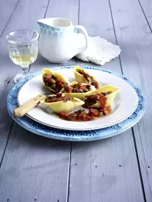 Season the sauce with salt, pepper and sugar. Pour the pasta into a sieve, drain and spread on a tea towel. Fill pasta with ragout and serve.