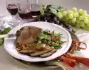 Put the pheasant on the fat pan of the oven, cover with bacon and roast in the preheated oven (electric: 175 °C/ gas: level 2) for 50-60 minutes. In the meantime, peel and finely dice the onions.