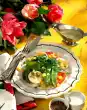 Heat the oil in a pan. Fry the escalopes in it at medium heat for 3-4 minutes on each side. Arrange on plates with lamb's lettuce and tomatoes.