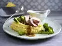 Arrange meat, semolina, broccoli and sauce on plates.
