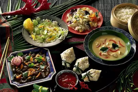 Wrap a chive stalk around the folded lace and carefully tie the stalk into a bow. Carefully place the bag in a steamer or sieve bag. Place insert in a saucepan over boiling water. Close the pot and steam the packet for 5-8 minutes at medium heat. Arrange on a plate and serve sprinkled with sesame seeds. Serve with red chilli sauce