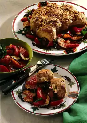 Season to taste with herbal salt and pepper. Arrange the warm rolls with some vegetables. Garnish with parsley. Serve the rest of the vegetables separately.