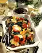 Clean and wash the tomatoes. Cut mozzarella and tomatoes into thin slices. Wash the basil and pluck off the leaves, put something aside for garnishing. Whisk milk and eggs, season well with salt, pepper and nutmeg.