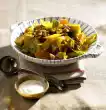 Finely crumble the bread. Mix the crumbs with the grated cheese and spread on the tomatoes 10 minutes before the end of the cooking time. Wash the chives, drain and cut into fine rolls. Sprinkle over the tomatoes.