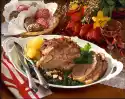 Place on the fat pan of the oven, spread onion and carrots around the roast. Cook in the preheated oven (electric cooker: 175 °C/ convection oven: 150 °C/ gas: level 2) for approx. 60 minutes. After 30 minutes, add 250 ml water to the fat pan.