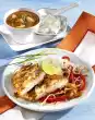 Put on the meat. Roll up the meat, stick together with wooden sticks and wrap tightly with kitchen string. Rub the meat with salt and pepper. Place on the fat pan of the oven. Heat the remaining clarified butter and pour it over the meat. Roast in the preheated oven (electric cooker: 200 °C/ gas: level 3) for about 1 hour. After 15 minutes roasting time add the remaining mushrooms and leek and roast with them. Deglaze with 1/2 litre warm water. Remove turkey from the fat pan and keep warm. Pour roast stock through a sieve. Stir in remaining crème fraiche. Bring to the boil briefly, thicken with sauce thickener and bring to the boil again. Season to taste with salt and pepper. Cut the roast open and arrange on the red cabbage vegetables. Sprinkle sauce with coarse pepper and serve extra. Serve with croquette balls