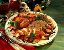 Wash potatoes thoroughly and cook in boiling salted water for about 20 minutes. Meanwhile peel and finely dice onion and garlic. Wash sage, dab dry and pluck leaves from the stems. Put some leaves aside for garnishing. Cut the rest into strips. Wash the meat thoroughly, dab dry with kitchen paper and cut a pocket with a sharp knife.