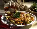 Then season with salt and pepper. Heat the rest of the oil in a pan and fry the stuffed escalopes in it at medium heat on each side for about 4 minutes. Then season with salt and pepper. Clean, wash, quarter, seed and finely dice the tomato. Arrange potatoes, vegetables, meat and sauce on a plate. Serve garnished with sage