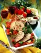 Bring to the boil again. Cut the roast into slices and arrange on a plate. Cover with some sauce. Add grilled tomatoes. Remaining sauce extra is enough. Garnish as you like with parsley leaves or chopped parsley for the grilled tomatoes.