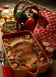 Spread the mince over it and fold the fillet back together. Tie together with kitchen string and rub with salt and pepper. Place on the fat pan of the oven or in a roasting pan. Pour hot clarified butter over it and bake in the preheated oven (electric: 200 °C/ gas: level 3) for about 45 minutes.