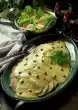Stir in cream and paprika paste and let everything boil down a little thick. Season to taste with salt and pepper. Cut the stuffed veal fillet open, arrange with potato balls and vegetables. Garnish with chervil.