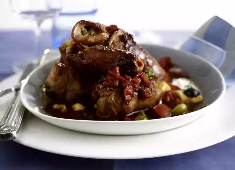 Sauté the veal olives in it all around for about 5 minutes until golden brown. In the meantime dice the remaining onion. Wash and clean the tomatoes and cut into 1-1.5 cm cubes. Remove the meat and let it drain.