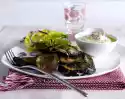 Add rice to 300 ml salt water and let it swell at low heat for about 20 minutes. Clean and wash the zucchini. Cut off about 1/3 of the length of each zucchini and dice finely. Hollow out the remaining zucchini with a teaspoon. Clean, wash and pat mushrooms dry.