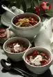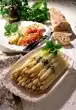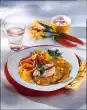 Clean and wash the sugar snap peas, blanch in boiling salted water for about 2 minutes and drain. Clean, wash and halve the cherry tomatoes. Put the vegetables in an ovenproof dish.