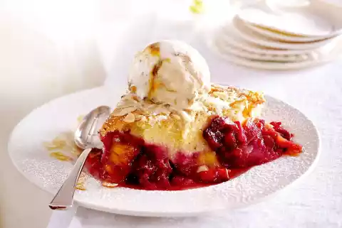 Tip: Peaches, apricots, cherries, apples, pears and berries also taste good in the cobbler. Since berries are very tender, do not pre-bake them. If you use frozen goods outside the season, they should be defrosted first.