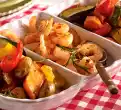 For the summer rolls, rinse the prawns and pat them dry. Heat the oil in a wok or frying pan. Fry the prawns for about 2 minutes on each side. Season with salt and pepper. Pour boiling water over the noodles, let them soak for about 20 seconds, then drain.