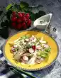 Season to taste with lemon juice, salt and pepper. Rinse cress, drain, cut off and, except for a teaspoon for garnishing, fold into the sauce. Pour the cress sauce over the salad and sprinkle with remaining cress.