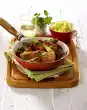 Place the roast in a flat roasting pan spread with oil. Arrange shallots around the roast. Cook in the preheated oven (electric cooker: 175 °C/ convection oven: 150 °C/ gas: level 2) for approx. 1 1/4 hours. After approx. 45 minutes, add wine and 100 ml water