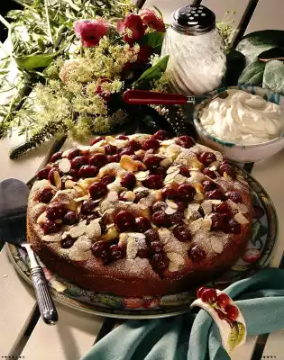 Drain the cherries. Cream fat, sugar, salt and Citro-back. Stir in eggs one after the other. Mix flour and baking powder and stir into the dough with the milk. Pour into a springform pan (26 cm Ø) lined with baking paper and smooth it down. Spread cherries on top.