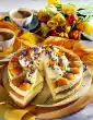 Turn over 1 cake. Fill with eggs. Spread with some buttercream and place second cake on top. Spread the remaining cream on the cake. Decorate with chocolate lentils. Chill for about 2 hours.