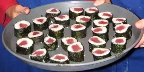 Place the tuna on top and season with wasibi or honey if desired. Now form a roll. Make sure that the rice is firmly attached to the fish.