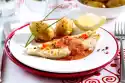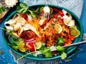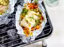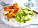 Lay the salmon strips flat next to each other, arrange the potato salad on top of each 1⁄4 Wash the dill and shake it dry, pluck the flags. Cut cress from the bed. Add cress and dill to the potato salad.