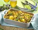 Melt the fat and pour over the potatoes. Sprinkle with breadcrumbs. Bake in the preheated oven (electric cooker: 175 °C / convection oven: 150 °C / gas: level 2) for 40-45 minutes