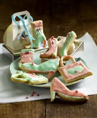 Knead the butter in pieces, sugar, flour, vanillin sugar and egg first with the dough hooks of the hand mixer, then with your hands to a smooth dough. Wrap dough in foil and chill for about 30 minutes. Roll out to a thickness of approx. 3 mm on a work surface dusted with flour. Cut out pockets and shoes. Put cookies on 2-3 baking trays lined with baking paper. Bake one after the other in a preheated oven (electric cooker: 200 °C/ convection oven: 175 °C/ gas: level 3) for 8-10 minutes. Let them cool down.