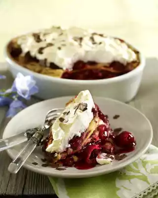Pour over 1/3 of the vanilla cream. Layer the remaining ingredients in the same way, finishing with a layer of cherries. Bake in the preheated oven (electric cooker: 200 °C/ convection oven: 175 °C/ gas: level 3) for approx. 30 minutes.