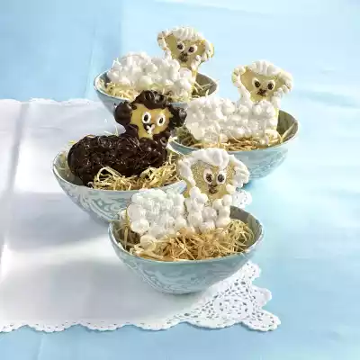 Spray the lamb, except for one, with a "woolskin" and leave something to decorate the faces.