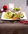 Season with salt, pepper and paprika. Chop chervil and stir into the egg cream. Heat 1 tablespoon of oil. Fry 1/4 of the potatoes and shallots until crispy while turning. Season with salt and pepper. Add 2 peppers, also fry briefly. Pour 1/4 of the egg cream over them. Leave to set at low heat. Turn once, fry briefly. Keep the omelette warm and prepare the remaining ingredients in the same way. Cut ham slices in half lengthwise. Melt butter in a wide pan.