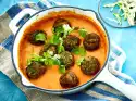Sprinkle with sugar and deglaze with vinegar and orange juice. Add the spinach and let it collapse. Mix cashewmus, soy drink and soy cream, pour in, bring to the boil and simmer for about 2 minutes. Season sauce with salt and pepper, put aside.